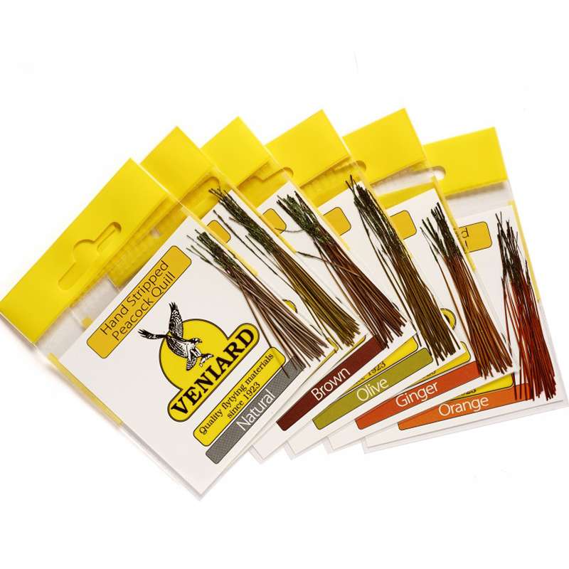 These Hand Stripped Peacock Quills from Veniard take away the hassle of stripping your own quills and provide you with perfect, ready to use quills in a variety of colours for dry Trout fly tying.